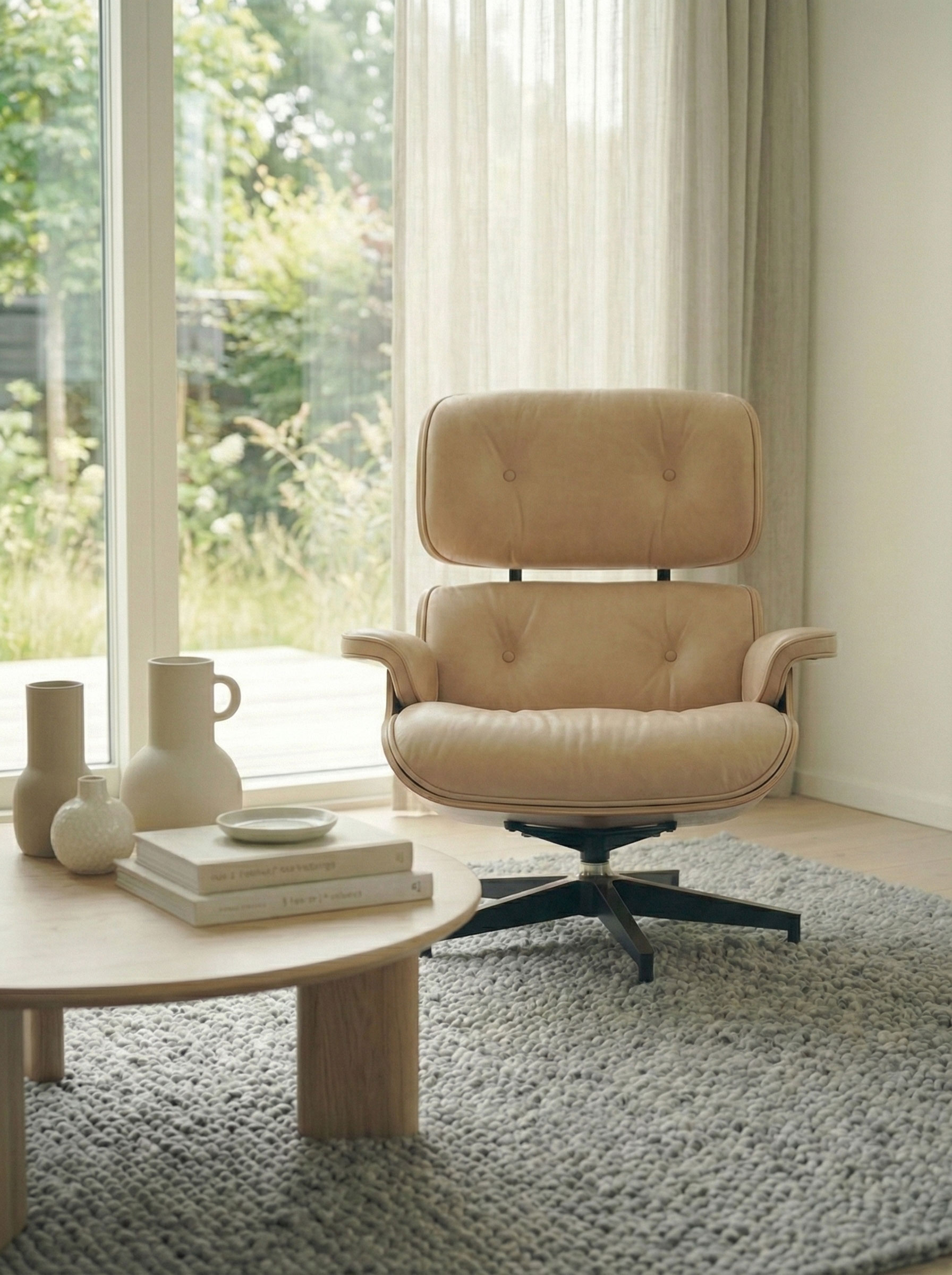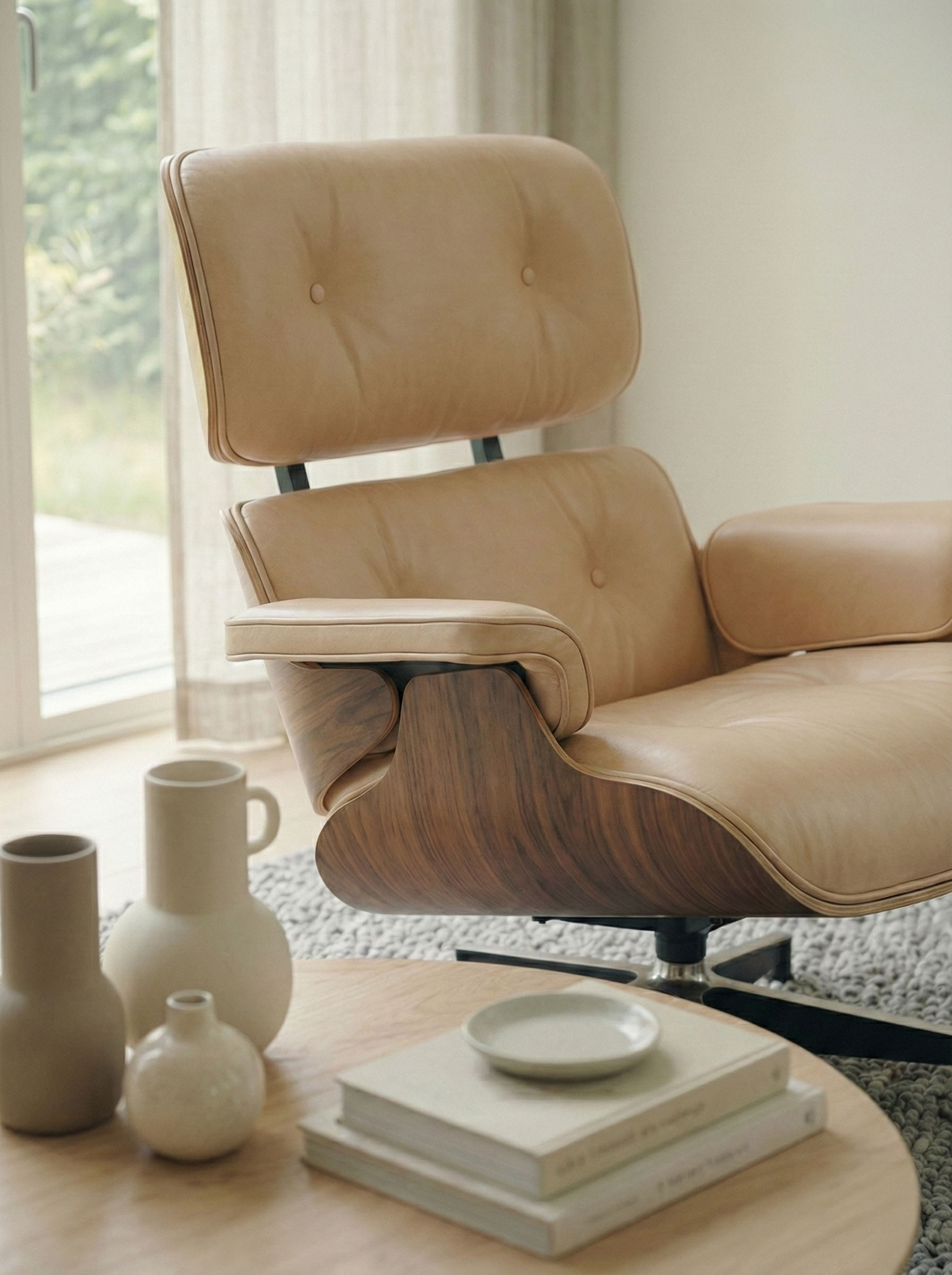 Eames Lounge Chair – Charles & Ray Eames – Beige Läder & Körsbärsträ – Vitra
