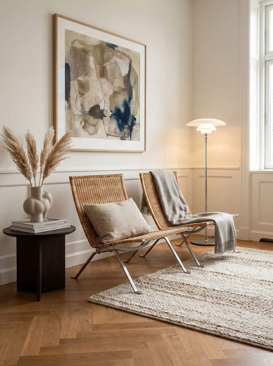 Upplev den perfekta balansen mellan industriell minimalism och organiskt hantverk med PK22 i flätad rotting. Denna ikoniska fåtölj, formgiven av Poul Kjærholm för Fritz Hansen, är en milstolpe inom dansk designhistoria och erbjuder en tidlös estetik som bara blir vackrare med åren.